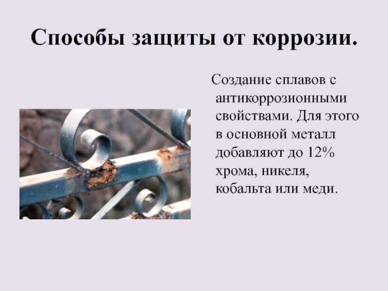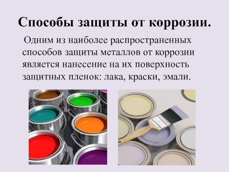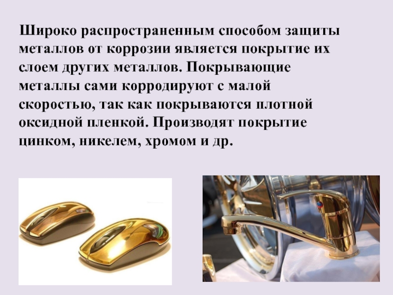 Слайд 16 Широко распространенным способом защиты металлов от коррозии является покрытие