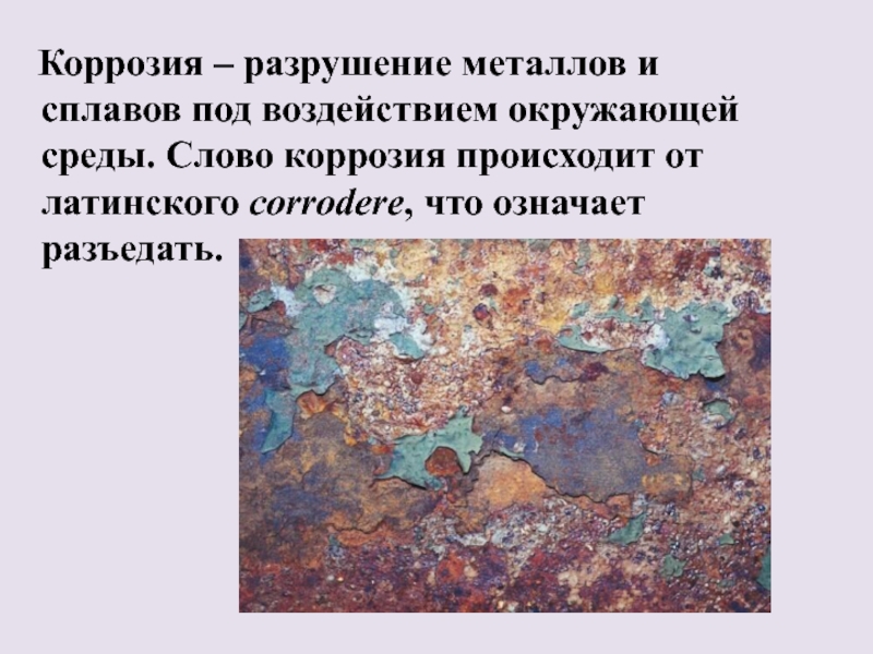 среды. Слово коррозия происходит от латинского corrodere, что означает разъедать.