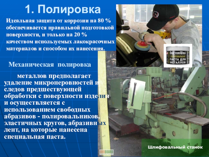следов предшествующей обработки с поверхности изделия и осуществляется с использованием свободных абразивов - полировальников, эластичных кругов, абразивных лент, на которые нанесена специальная паста.