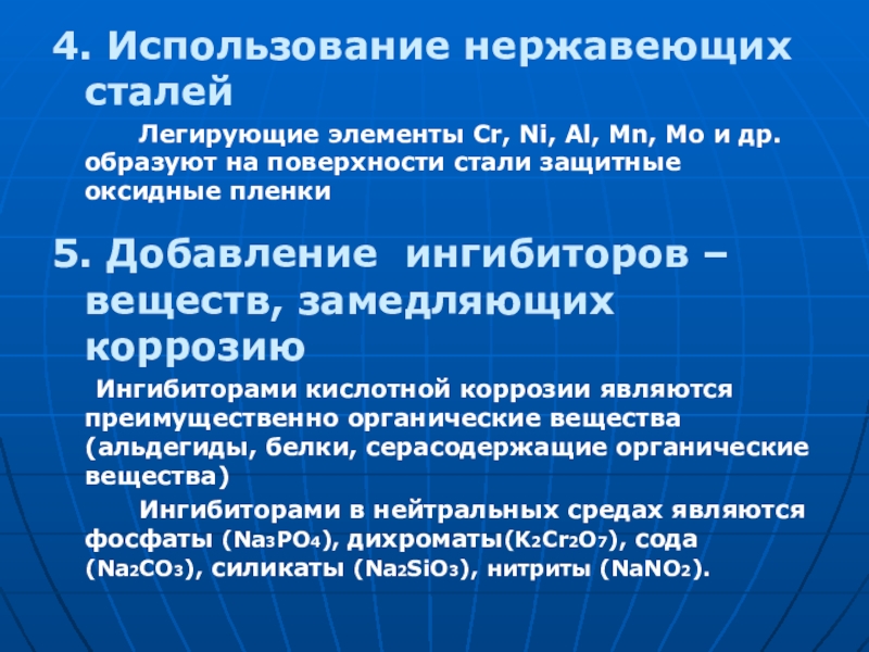 5. Добавление ингибиторов – веществ, замедляющих коррозию