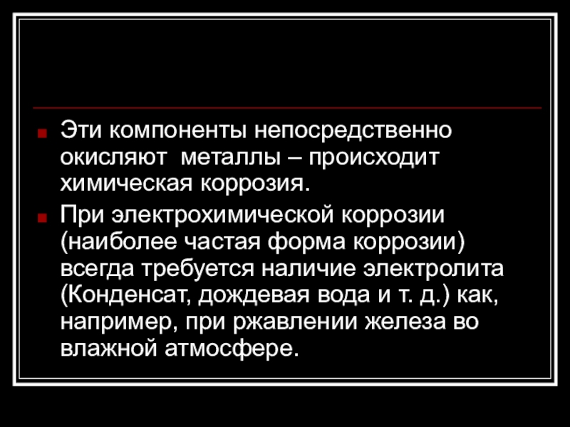 Эти компоненты непосредственно окисляют металлы – происходит химическая коррозия.