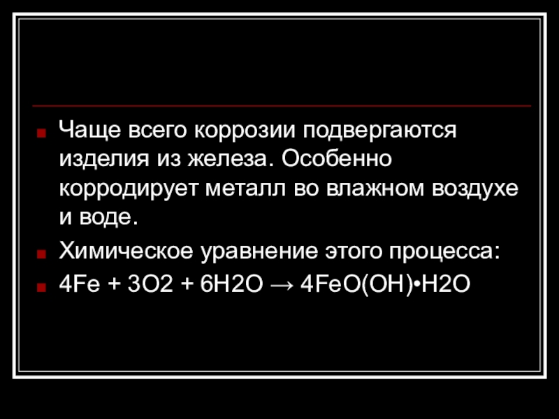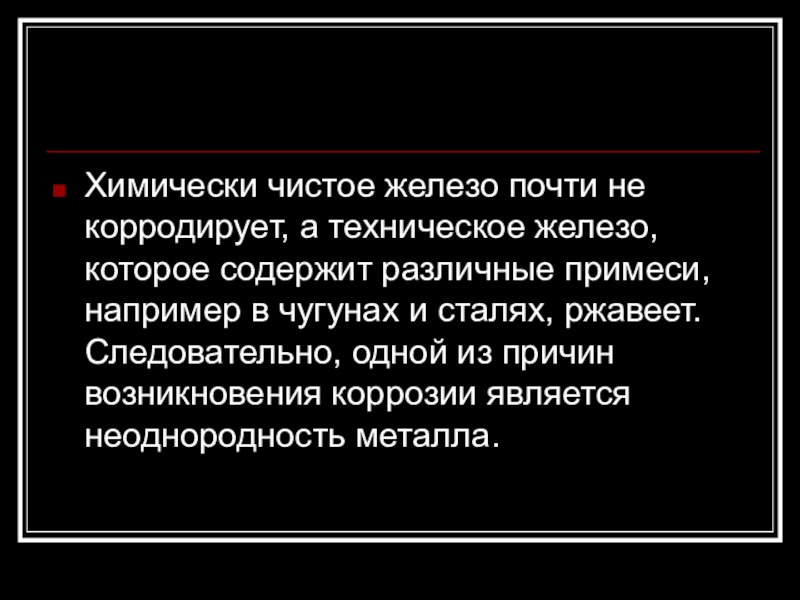 Химически чистое железо почти не корродирует, а техническое железо, которое содержит