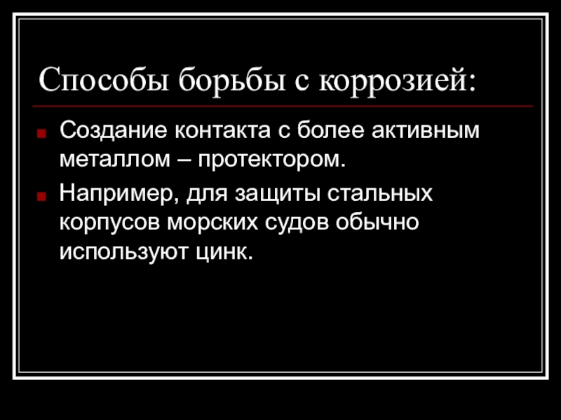 для защиты стальных корпусов морских судов обычно используют цинк.