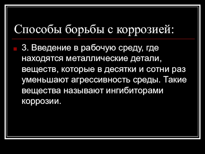 детали, веществ, которые в десятки и сотни раз уменьшают агрессивность среды. Такие вещества называют ингибиторами коррозии.