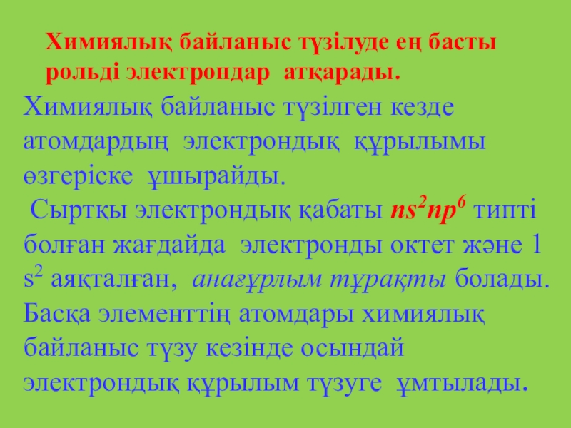 Химиялық байланыс түзілуде ең басты рольді электрондар атқарады.