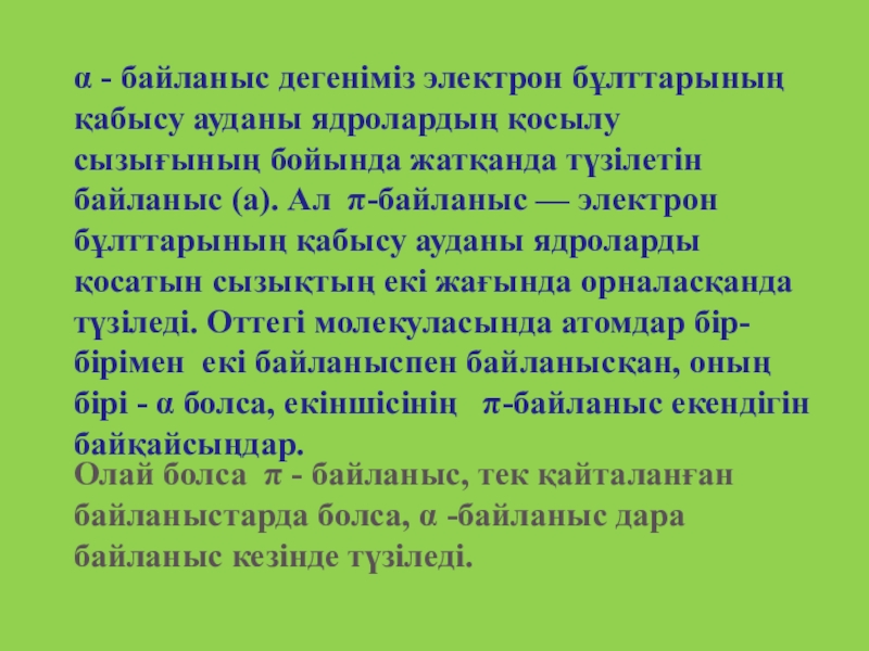 Олай болса π - байланыс, тек қайталанған байланыстарда болса, α -байланыс дара байланыс кезінде түзіледі.