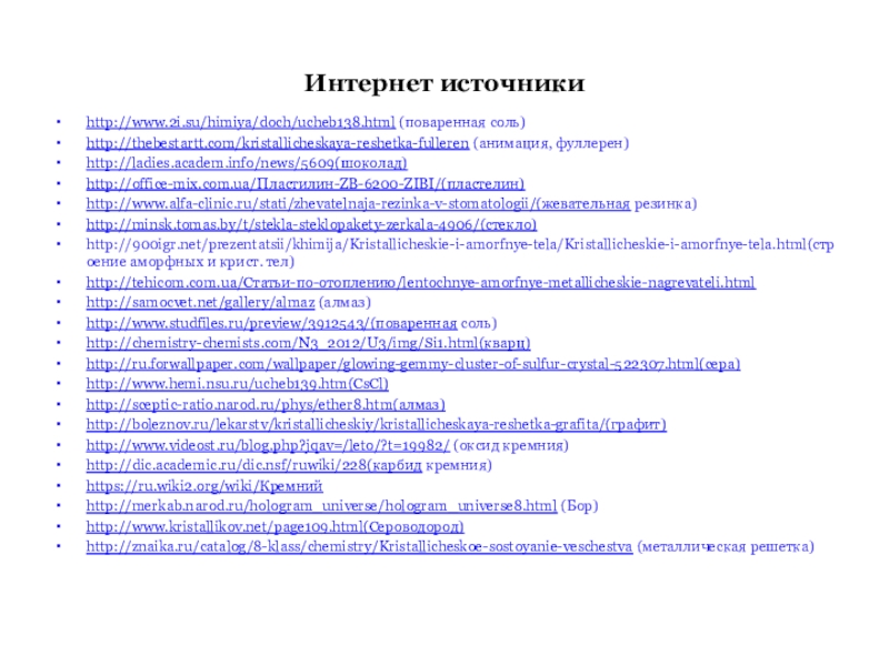 10. Вещества с металлическими решётками