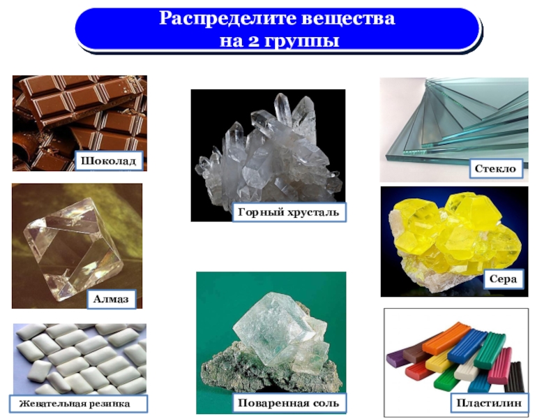 6. Четырёххлористый углерод плавится при комнатной температуре, а поваренная соль - при 8000С. Причина такого различия в том , что кристаллическая решётка у этих веществ соответственно