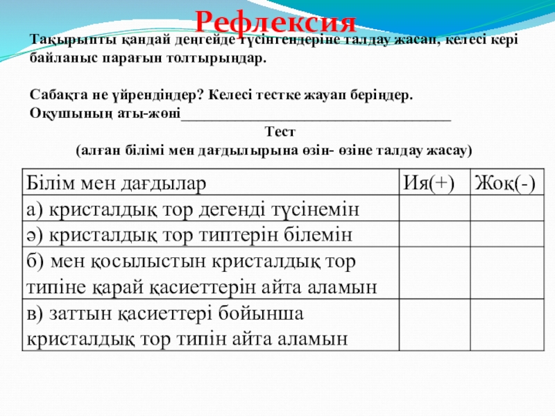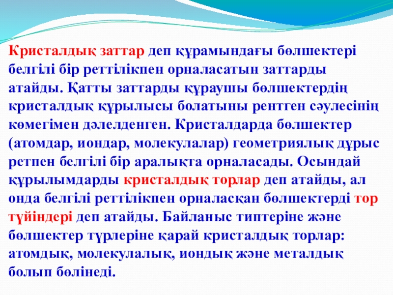 Бөлшектері кеңістікте белгілі бір ретпен орналасады