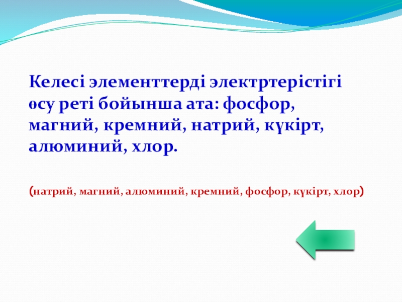(натрий, магний, алюминий, кремний, фосфор, күкірт, хлор)