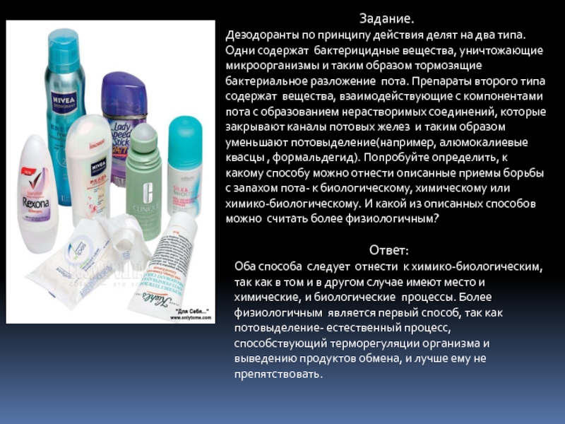 Оба способа следует отнести к химико-биологическим, так как в том и в другом случае имеют место и химические, и биологические процессы. Более физиологичным является первый способ, так как потовыделение- естественный процесс, способствующий терморегуляции организма и выведению продуктов обмена, и лучше ему не препятствовать.