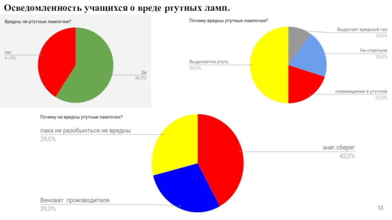 Слайд 13Осведомленность учащихся о вреде ртутных ламп.