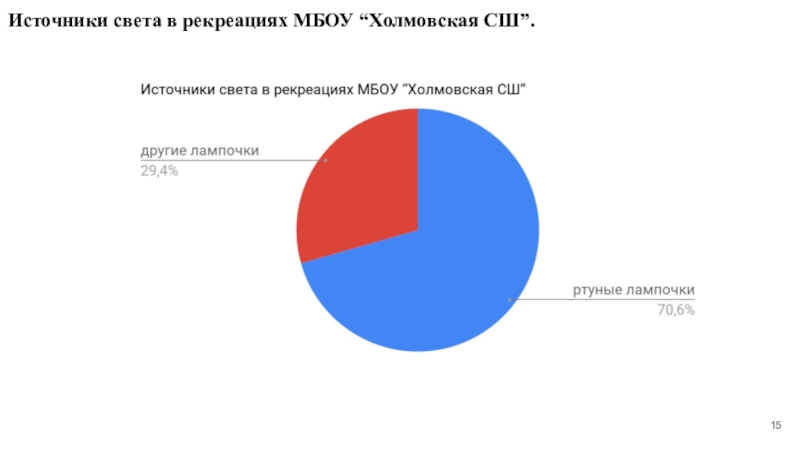 Слайд 15Источники света в рекреациях МБОУ “Холмовская СШ”.