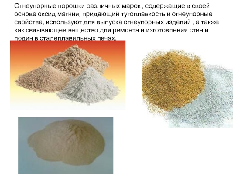 Магнезиальные вяжущие представляют собой тонкомолотые порошки, содержащие оксид магния MgO и твердеющие при затворении водными растворами некоторых солей, главным образом хлористого или сернокислого магния. Эти вяжущие изготовляют следующих видов: магнезит каустический, получаемый путем обжига при температуре 800-850° природного магнезита, который разлагается на оксид магния и углекислый газ .