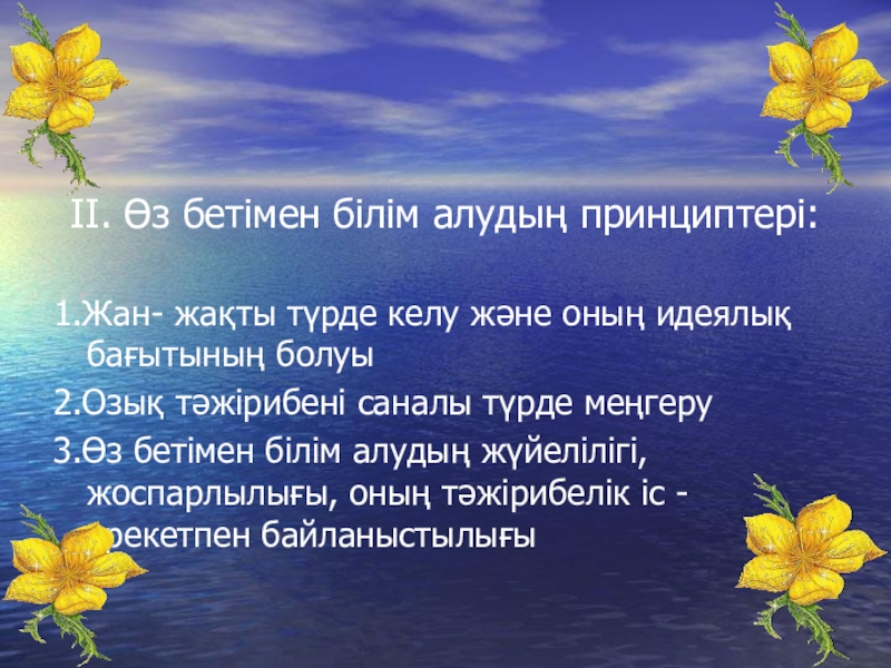 Слайд 4ІІ. Өз бетімен білім алудың принциптері: