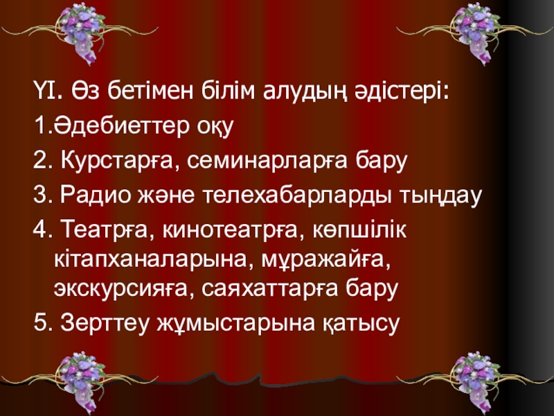 Слайд 8ҮІ. Өз бетімен білім алудың әдістері: