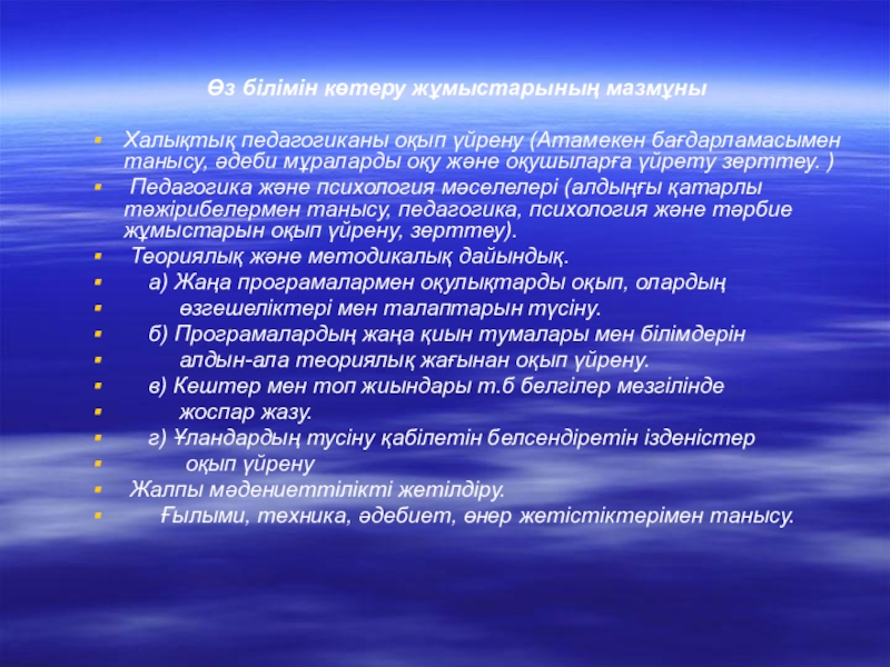 білімін көтеру жұмыстарының мазмұны