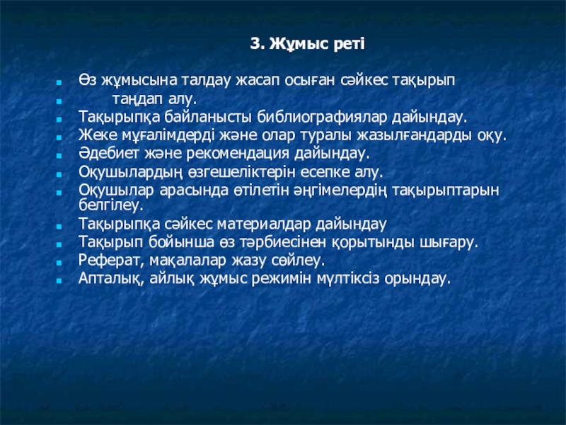 3.Өз бетімен білім алудың жүйелілігі, жоспарлылығы, оның тәжірибелік іс - әрекетпен байланыстылығы