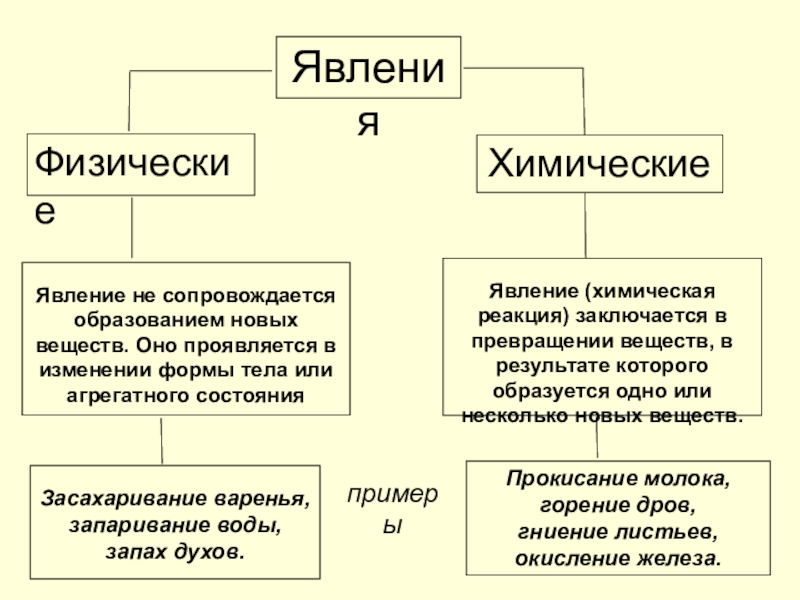 Явление (химическая реакция) заключается в превращении веществ, в результате которого образуется одно или несколько новых веществ.