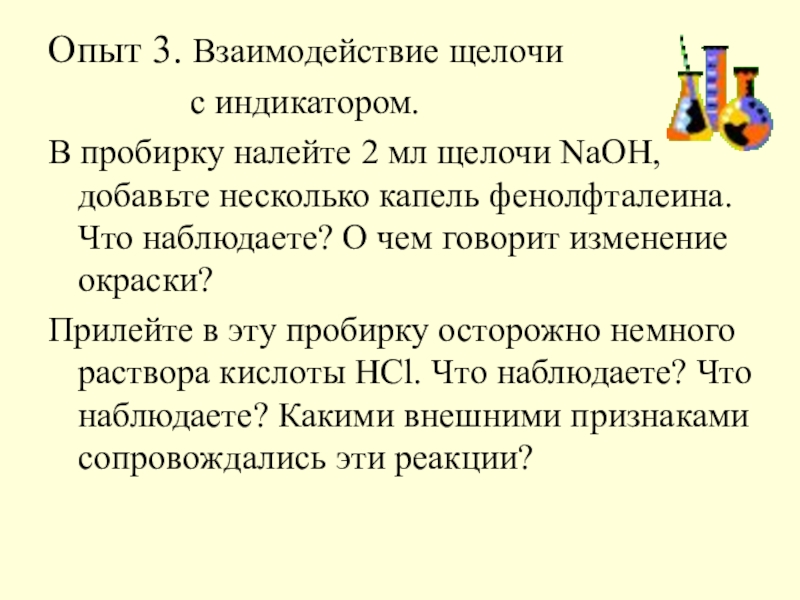 Слайд 21Опыт 3. Взаимодействие щелочи