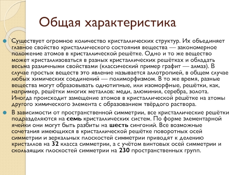 Существует огромное количество кристаллических структур. Их объединяет главное свойство кристаллического