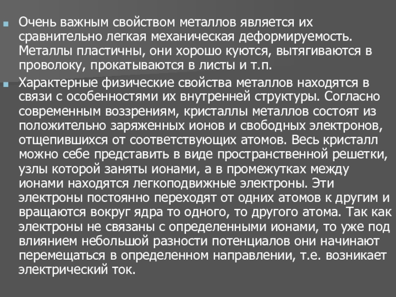 Слайд 9Очень важным свойством металлов является их сравнительно легкая механическая деформируемость. Металлы