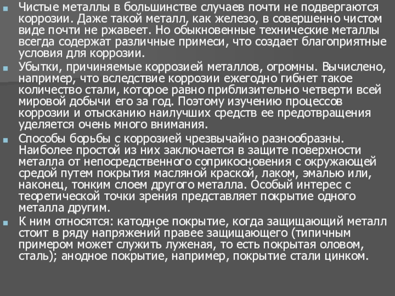 Слайд 23Чистые металлы в большинстве случаев почти не подвергаются коррозии. Даже такой