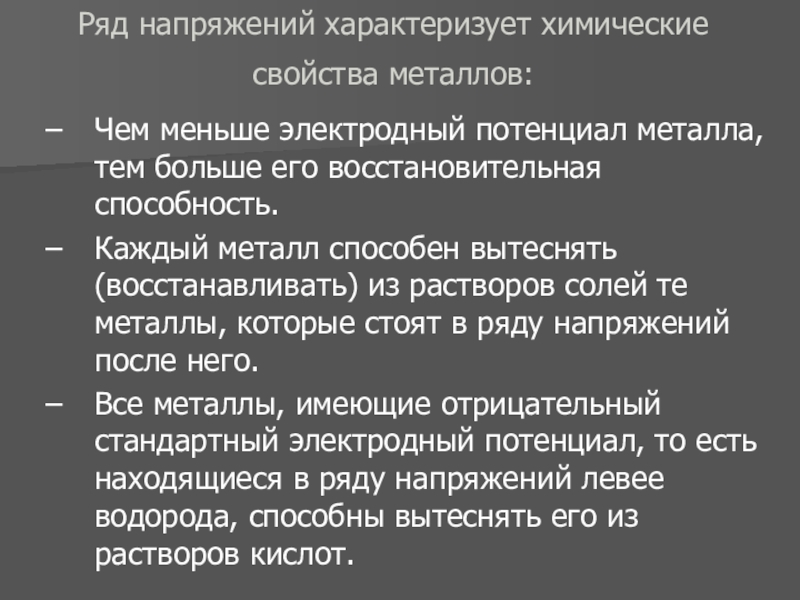 Слайд 18Ряд напряжений характеризует химические свойства металлов: