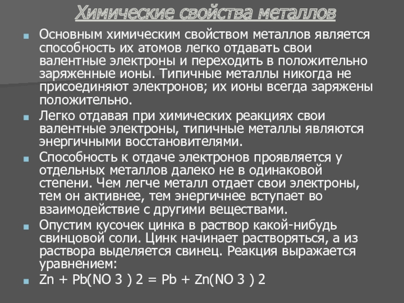 Легко отдавая при химических реакциях свои валентные электроны, типичные металлы являются энергичными восстановителями.
