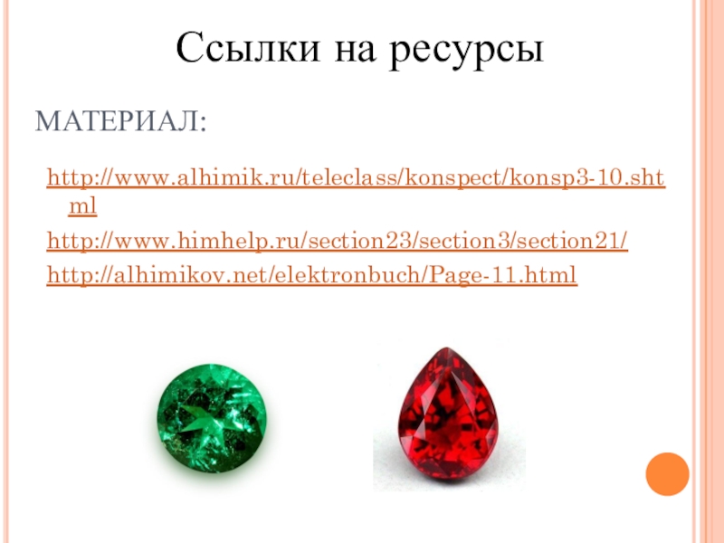 МАТЕРИАЛ:http://www.alhimik.ru/teleclass/konspect/konsp3-10.shtmlhttp://www.himhelp.ru/section23/section3/section21/http://alhimikov.net/elektronbuch/Page-11.htmlСсылки на ресурсы