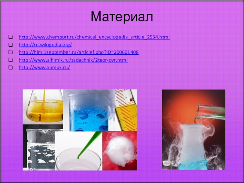 Материалhttp://www.chemport.ru/chemical_encyclopedia_article_2534.htmlhttp://ru.wikipedia.org/http://him.1september.ru/articlef.php?ID=200601408http://www.alhimik.ru/zadachnik/2teor-ovr.htmlhttp://www.xumuk.ru/