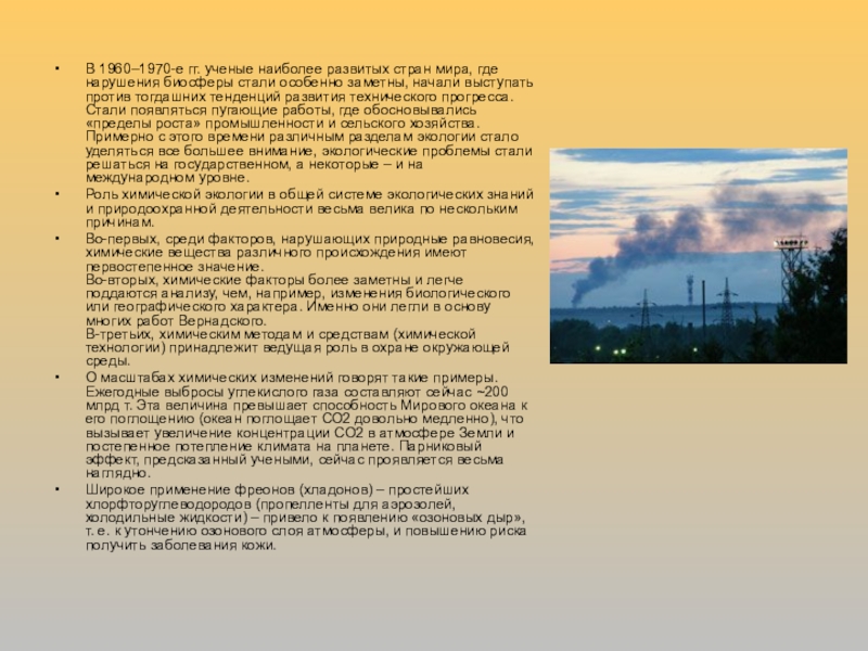 В 1960–1970-е гг. ученые наиболее развитых стран мира, где нарушения биосферы