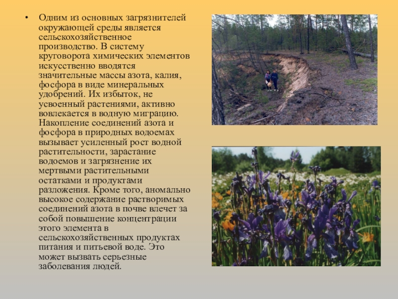 Слайд 9Одним из основных загрязнителей окружающей среды является сельскохозяйственное производство. В систему
