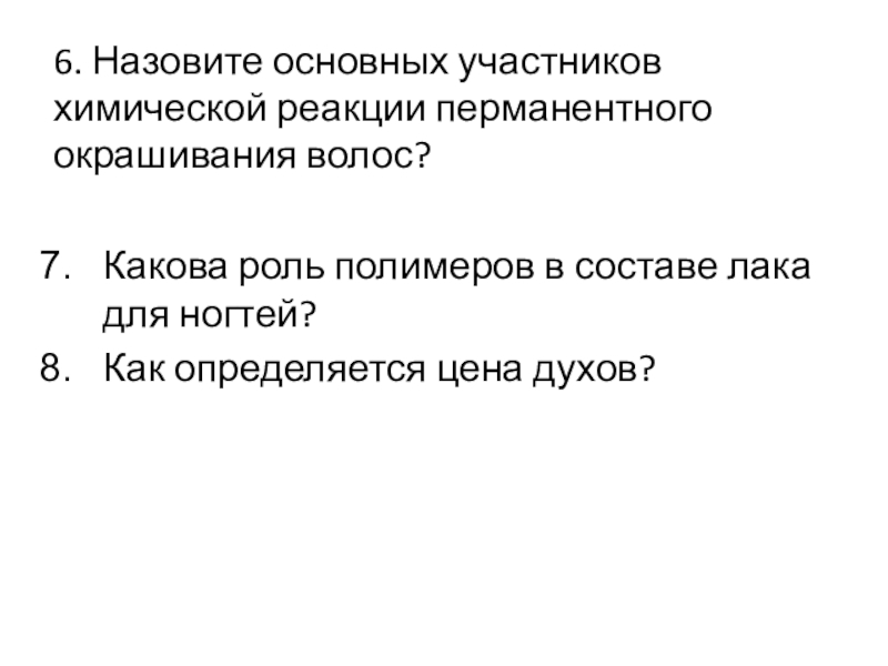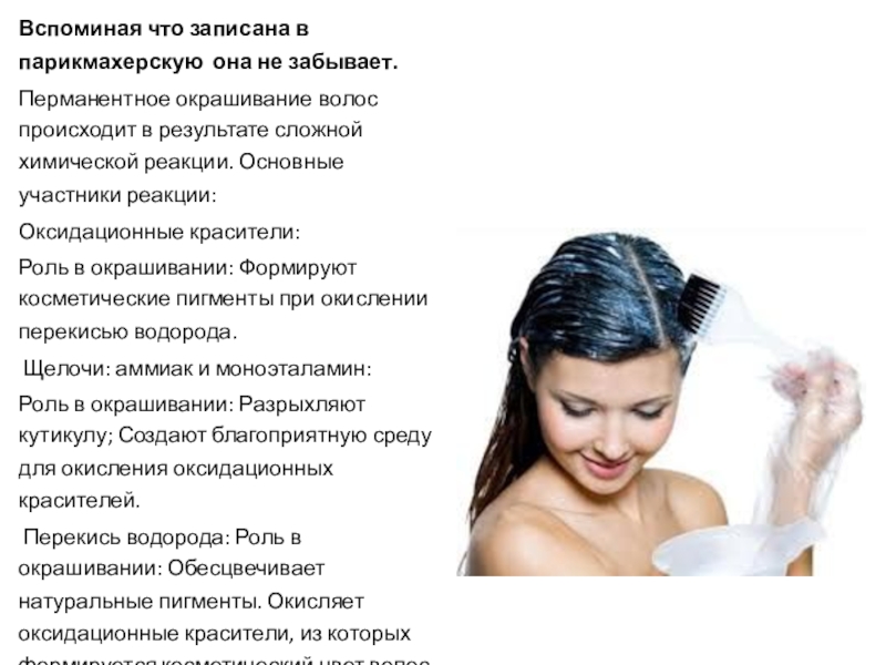Слайд 156. Назовите основных участников химической реакции перманентного окрашивания волос?