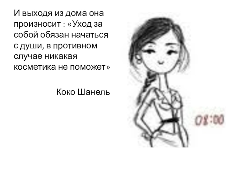 Слайд 12И выходя из дома она произносит : «Уход за собой обязан