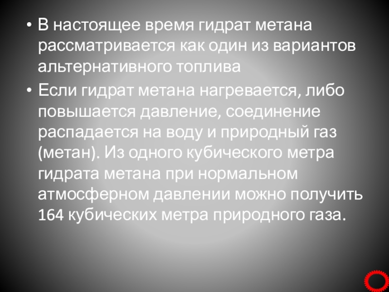 Слайд 14В настоящее время гидрат метана рассматривается как один из вариантов альтернативного
