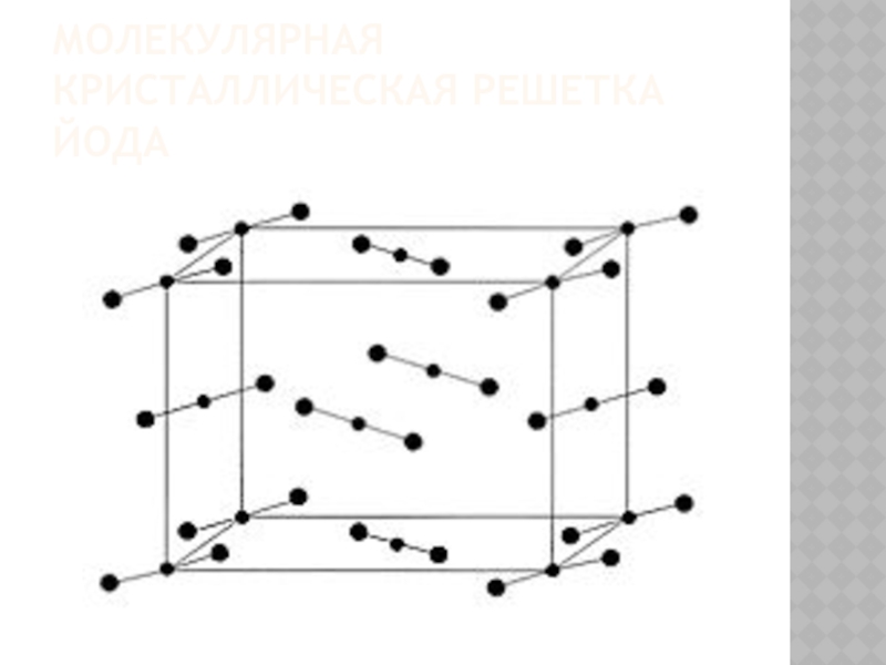 Слайд 10МОЛЕКУЛЯРНАЯ КРИСТАЛЛИЧЕСКАЯ РЕШЕТКА ЙОДА
