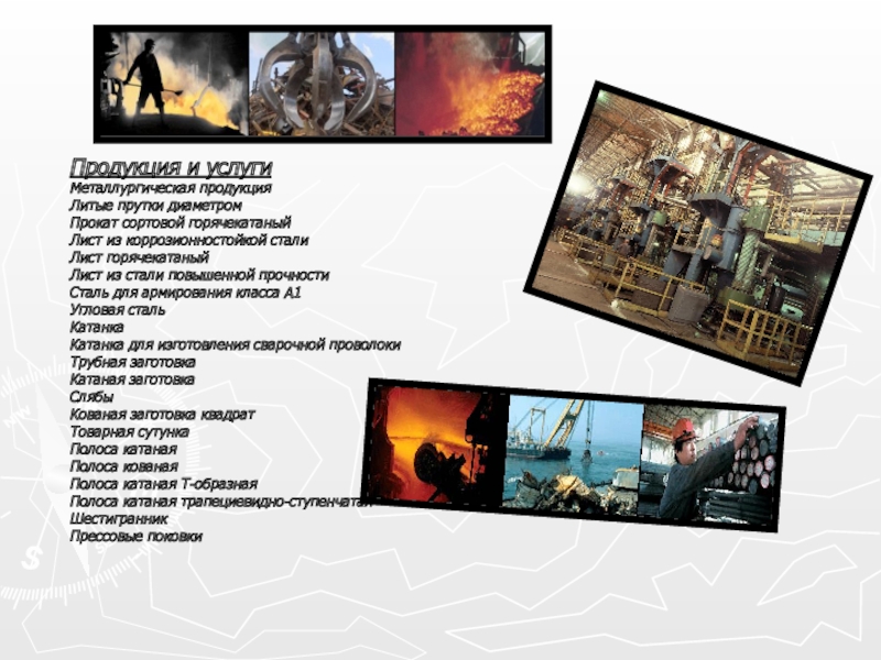 потребности комбината, но и поставляет его другим горнорудным, металлургическим, электродным и машиностроительным предприятиям Ассортимент хим. продукции состоит из более чем 30 наименований, включая сульфат аммония, смолы, пек, нафталин, бензол и многие другие продукты для производства на других заводах пластических масс, лекарств, парфюмерии и продукции органического синтеза. При производстве чугуна используется агломерат из собственного производства, получаемый на 3 аглолентах общей площадью 212 м2. Доменный шлак перерабатывается в продукцию для строительной индустрии. Сталеплавильное производство состоит из 4 основных цехов и комплекса вспомогательных Способы выплавки стали: конверторный и электродуговой в т.ч. многое в отечественной. металлургии впервые освоено челябинцами, в т. ч. обработка жидкого металла синтетическими шлаками и инертными газами в ковше, производство трансформаторных сталей в конвертерах по сульфидному варианту. В сталеплавильных цехах освоено производство более 1000 различных марок стали и сплавов.