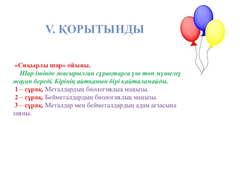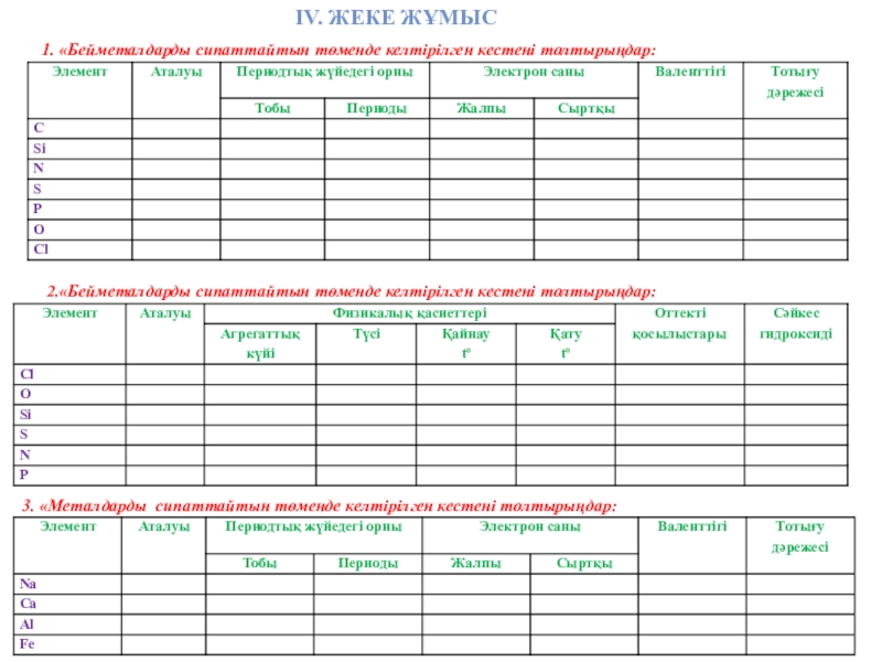 3. «Mеталдарды сипаттайтын төменде келтірілген кестені толтырыңдар: