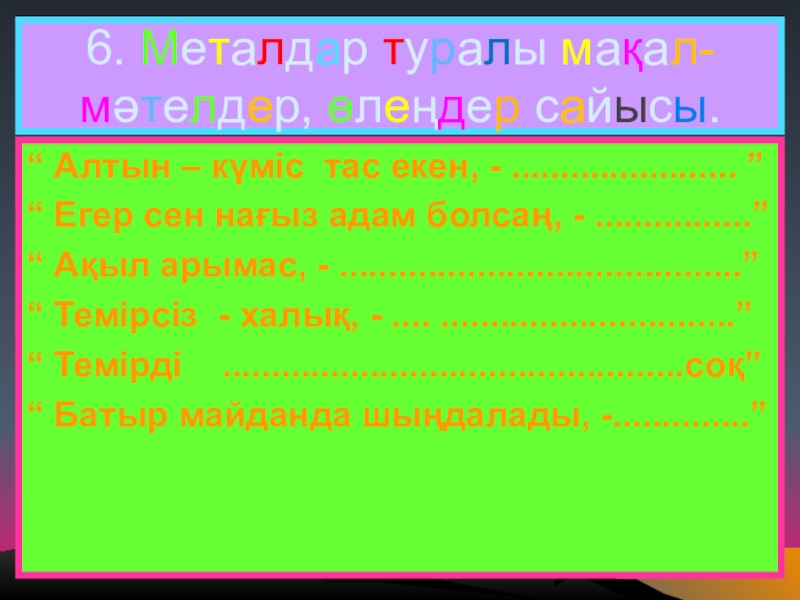 4. Металдардың химиялық қасиеттерін атаңыздар.