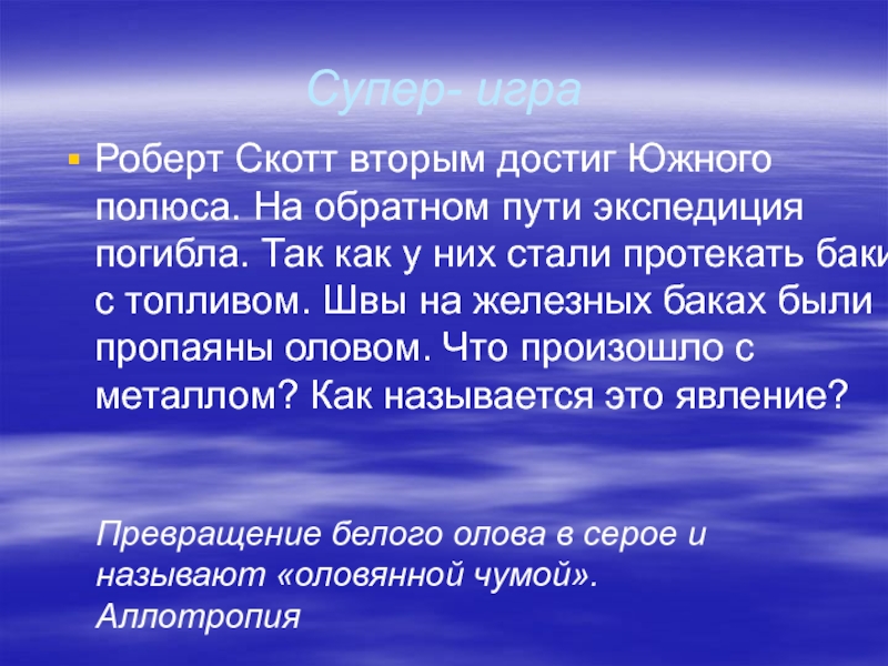Превращение белого олова в серое и называют «оловянной чумой». Аллотропия
