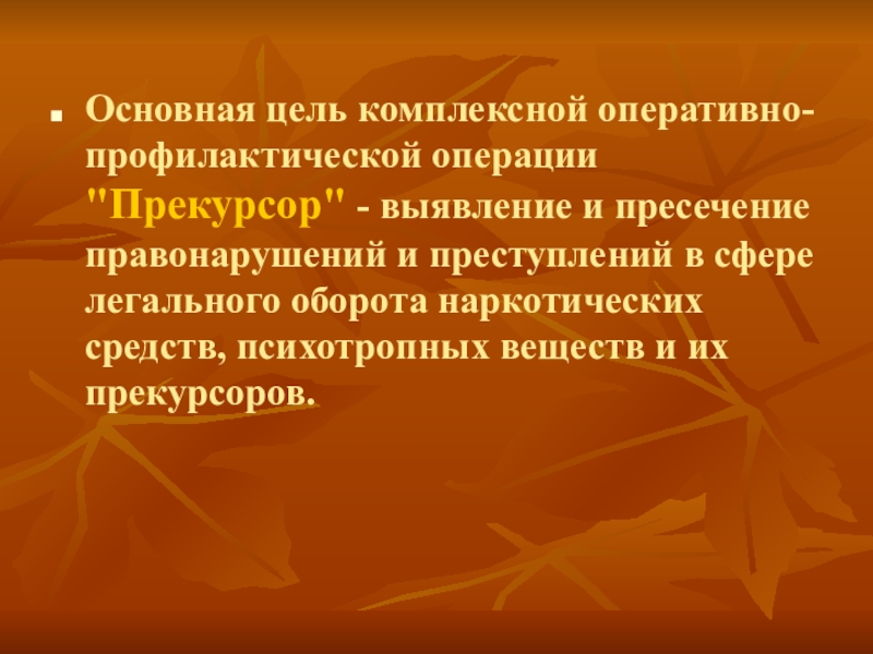 Основная цель комплексной оперативно-профилактической операции "Прекурсор" - выявление и пресечение правонарушений