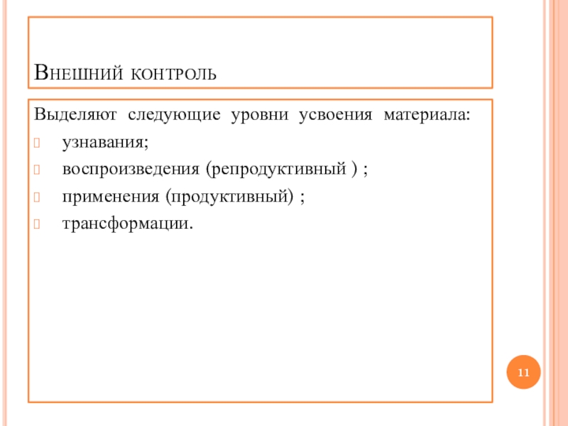 Слайд 11Внешний контроль