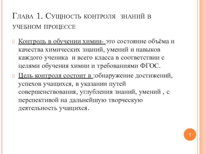 Слайд 7Глава 1. Сущность контроля знаний в учебном процессе