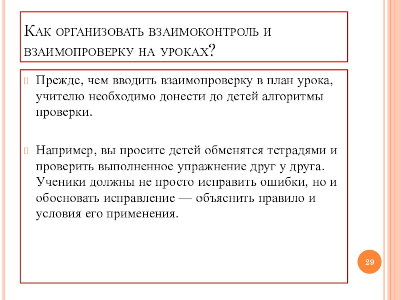 Слайд 29Как организовать взаимоконтроль и взаимопроверку на уроках?