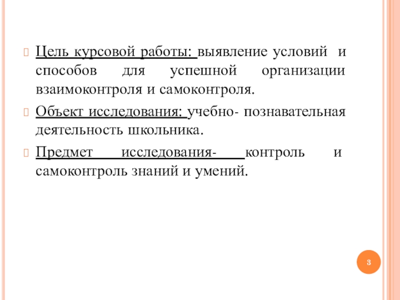 Слайд 3Цель курсовой работы: выявление условий и способов для успешной организации взаимоконтроля