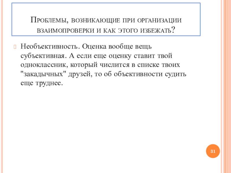 Слайд 31Проблемы, возникающие при организации взаимопроверки и как этого избежать?