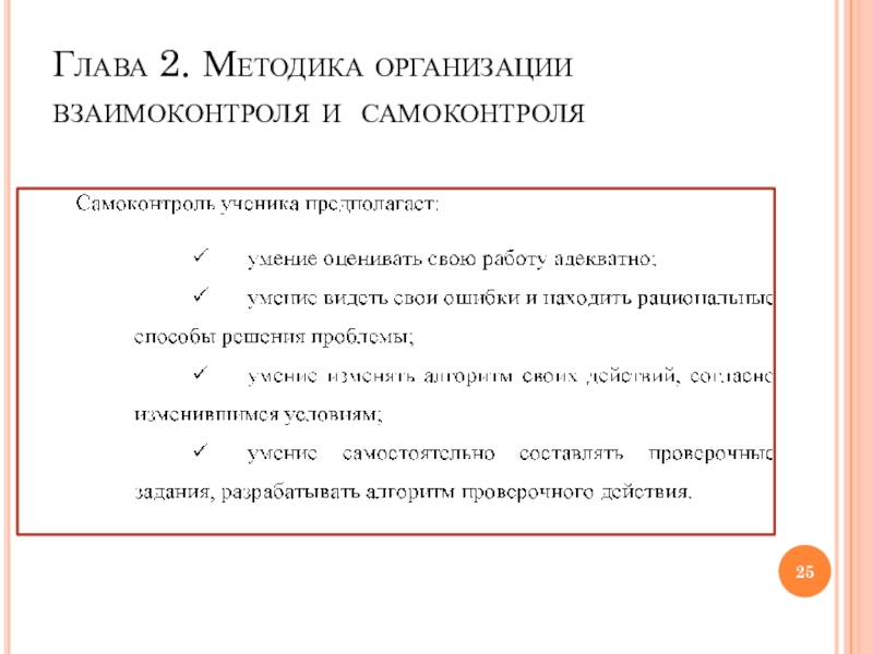 Слайд 25Глава 2. Методика организации взаимоконтроля и самоконтроля