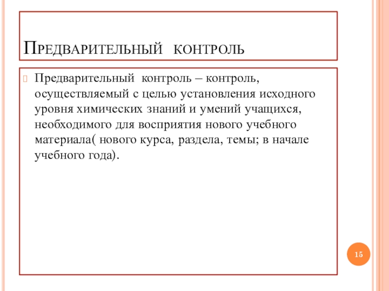 Слайд 15Предварительный контроль