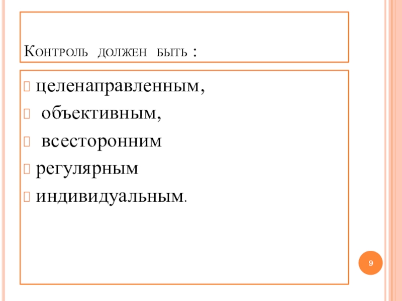 Слайд 9Контроль должен быть :